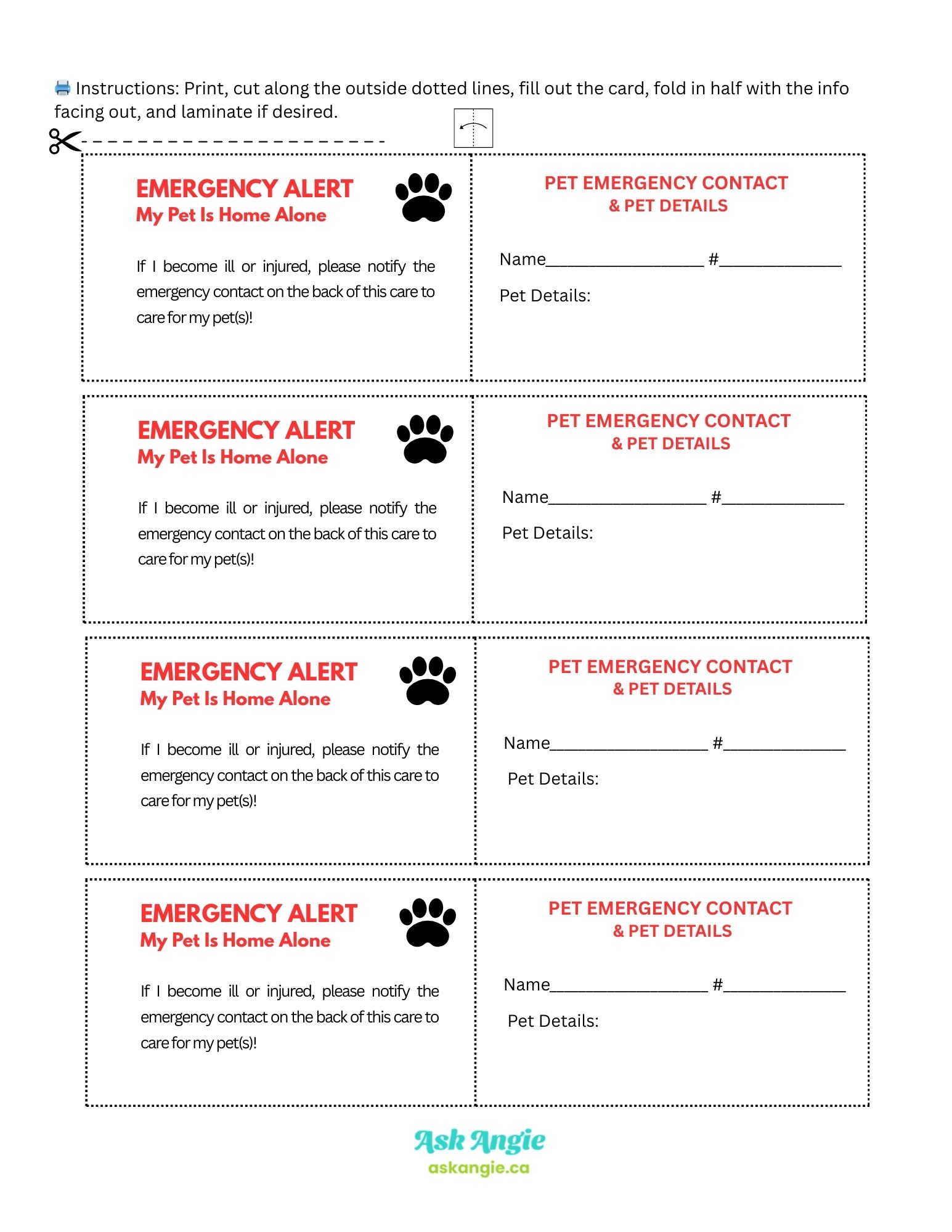 What’s included: Personalized Emergency Pet Home Alone sheet ready to print